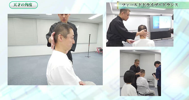 脳のリミッターが外れて覚醒率が上がると、痛みを消すことなどカンタン。痛みがある部分に手をかざすだけで痛みが消え、可動域もアップします。