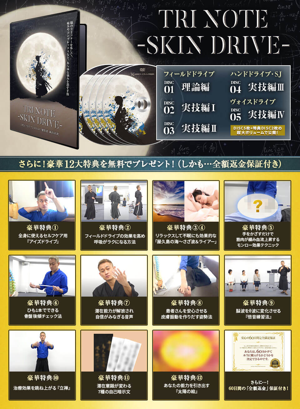 | 脳のリミッターを外して潜在意識、全身の不調まで改善させる 「TRI NOTE -SKIN DRIVE-」DVDプログラム |