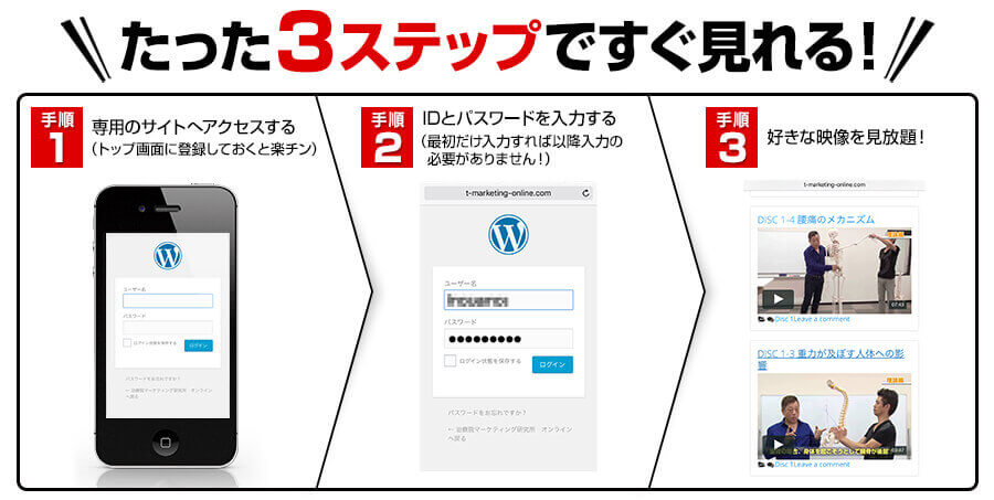 想像してみてください。外出中や、施術と施術のちょっとした隙間時間にスマホ片手にDVDの中身を観られたら、手技の練習はどれくらい捗りますか?このサービスを利用される先生からはいつも嬉しいお声をいただいております。